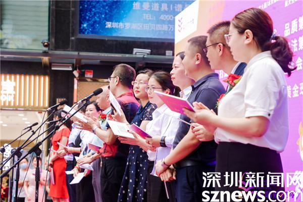 隨后,水貝萬山珠寶文化產(chǎn)業(yè)園總經(jīng)理陳曄平、金展珠寶廣場招商運(yùn)營總監(jiān)王琳琳、特力珠寶大廈運(yùn)營總經(jīng)理崔戰(zhàn)紅、水貝金座運(yùn)營中心總監(jiān)趙麗、水貝國際中心運(yùn)營總監(jiān)廖燦榮等交易中心代表,以及周六福珠寶總經(jīng)理謝明育、周大生珠寶行政副總經(jīng)理周洪生、金大福珠寶副總裁丘航等珠寶品牌代表一同上臺宣誓,表達(dá)展示特色、推廣品牌、促進(jìn)消費(fèi)、助推增長的決心。