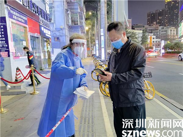 讀特客戶端·深圳新聞網(wǎng)2022年1月10日訊(記者 劉嘉敏 通訊員 楊紀歐)“來了來了,又來了一個!請打開健康碼,測體溫?!痹诹_湖區(qū)桂園街道老圍社區(qū)禧程酒店臨時檢測點,不時響起這樣的歡呼聲,那喜悅之情溢于言表,這是志愿者周先珍。夜已深,但檢測點依然燈火通明,社區(qū)工作者和志愿者以及醫(yī)務(wù)人員挑燈夜戰(zhàn),周先珍是其中之一。
