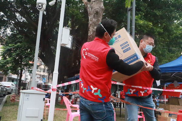 隨后,文促會一行來到了東湖街道大望社區(qū)。在社區(qū)核酸檢測現(xiàn)場,大望社區(qū)黨委書記高桂秀正在指揮現(xiàn)場工作;大望實業(yè)公司董事長何雨聰和大望社區(qū)副書記李雪康兩人都面帶倦容,明顯近期睡眠嚴重不足。據(jù)了解,高桂秀近期一直綁著護腰墊片,帶病堅持抗疫。
