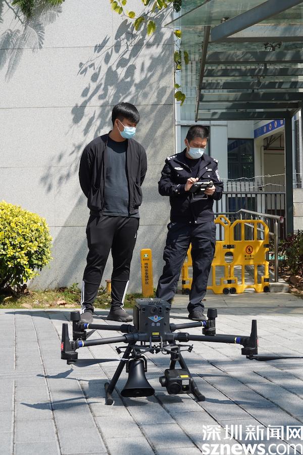 “為了您和家人的健康,所有在桂園街道轄區(qū)工作、生活的居民,從2月24日起連續(xù)4天實(shí)行全員核酸檢測,4天4檢。轄區(qū)內(nèi)所有物業(yè)小區(qū)、商業(yè)樓宇、市場等場所均設(shè)置卡口,人員進(jìn)入需掃描“場所碼”……”中午,記者在桂園街道鹿苑小區(qū)外見到,民警與無人機(jī)飛手正操控著一款“神兵利器”,助陣疫情防控,空中喊話管控、防范區(qū)居民,快速傳遞最新防疫信息。