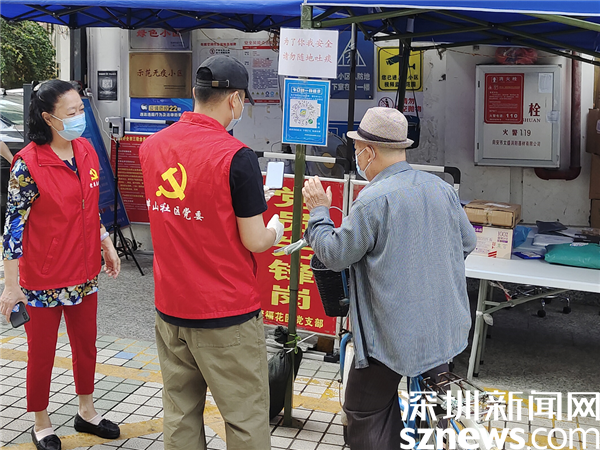 3月21日上午,在聚?;▓@黨員先鋒崗,老黨員張瑩和年輕黨員藍國亮在幫助居民掃場所碼。像這樣的新老黨員齊上陣,在畔山社區(qū)各黨支部還有很多,近日,轄區(qū)各核酸采樣點、小區(qū)出入口和城中村圍合卡點,處處可見鮮紅的黨旗和忙碌的紅馬甲,他們用實際行動影響并帶動更多的熱心市民群眾參與社區(qū)服務(wù),為一線防疫工作“添磚加瓦”。