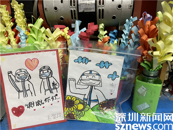 羅湖區(qū)蓮塘小學(xué)某班班長見醫(yī)護人員和義工志愿者日夜操勞,不辭辛苦,號召全班同學(xué)為防疫人員“送溫暖”。有的同學(xué)親手制作五顏六色的精美手折紙花,還有些同學(xué)別出心裁的繪制了“感謝大白”賀卡,禮物制作完成后,全班同學(xué)分頭行動,將手折紙花送到各核酸采樣點醫(yī)護人員和志愿者手中?!拔覀儙筒簧鲜裁矗鲂┝λ芗暗氖虑?,為大哥哥大姐姐送去感動和力量,也是為抗疫做貢獻?!眮碜粤_湖中醫(yī)院,在蓮塘村七巷小廣場支援的醫(yī)護人員們收到同學(xué)們送來的“禮物”非常開心,紛紛表示,雖然每天工作很辛苦,但能得到群眾尤其是孩子們的肯定十分幸福,禮物雖小,卻無比溫暖和感動。
