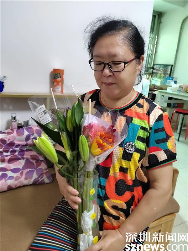 在活動(dòng)過(guò)程中,11位組員都收到了一束鮮花,是社工利用空余時(shí)間,捧著花送到每位組員家中的。社工用鮮花敲開(kāi)組員的家門(mén),這就仿佛是一次家訪(fǎng),收到花的組員開(kāi)心地與社工合影?;ㄩ_(kāi)的時(shí)候,不少組員都拍下來(lái)發(fā)在群里,讓快樂(lè)與美好的氣氛在群里彌漫。組員袁春艷在微信群里說(shuō):“感謝人美心善的社工們,在工作異常忙碌的同時(shí),不僅為我們精心準(zhǔn)備干貨滿(mǎn)滿(mǎn)、精彩絕倫的減壓課,還為我們送來(lái)鮮花的芬芳!讓我日常雜亂的家變得美麗精致、花香彌散、情趣高雅!真的有太多向您學(xué)習(xí)的地方!愛(ài)您!”