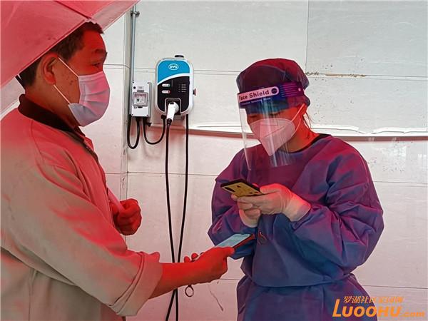 近期,深圳風(fēng)雨交加,老圍社區(qū)核酸檢測(cè)點(diǎn)秩序井然,居民排隊(duì)等候檢測(cè),三組通道通行順暢。何芬穿上藍(lán)色防護(hù)服,戴著口罩面屏,手持手機(jī),按照十人一組的規(guī)律,快速有效地掃碼,掃完優(yōu)雅地做出手勢(shì),指示檢測(cè)人員走入正確通道,并及時(shí)阻止試圖串道的個(gè)別人。有她的高效掃碼,大大減少了居民排隊(duì)等候的時(shí)間。大雨從上午下到晚上,帳篷縫隙處不斷有雨滴落下來(lái),打在頭上身上,但是何芬全神貫注,根本注意不到,等到21點(diǎn)下班,才發(fā)現(xiàn)防護(hù)服都濕了。