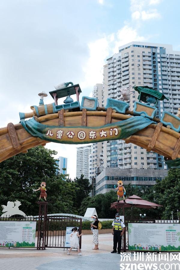 布滿童趣裝飾的東大門,進(jìn)入公園前需出示健康碼和核酸檢測證明,做好疫情防控措施,為前來玩耍的孩子們一份安全保障。