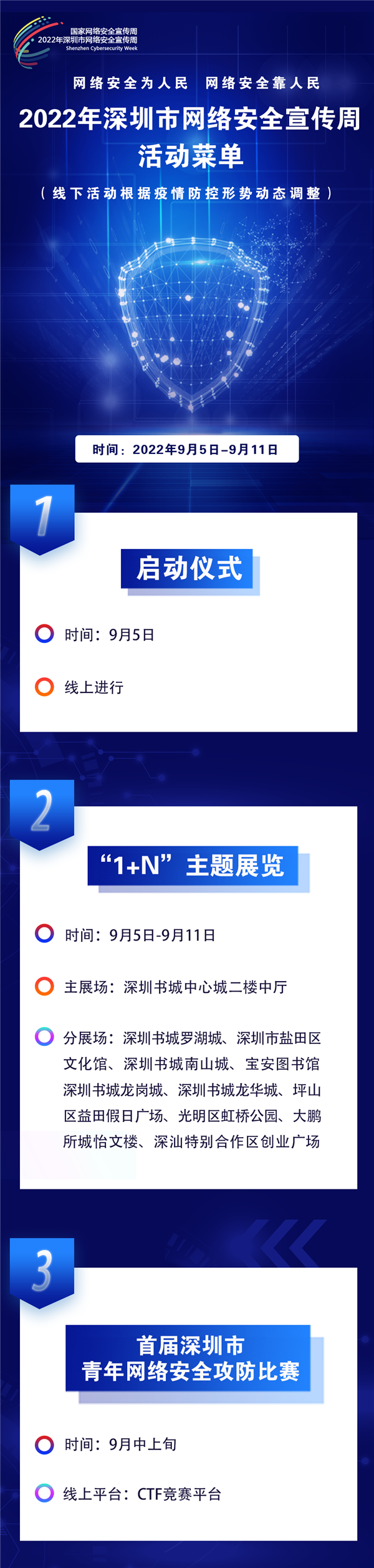 據(jù)介紹,2022年羅湖區(qū)網(wǎng)絡(luò)安全宣傳周將采取線(xiàn)上與線(xiàn)下相結(jié)合、傳統(tǒng)媒體與新媒體齊發(fā)力的方式,圍繞“3+N”的形式開(kāi)展:“3”包括舉辦一場(chǎng)主題展覽、拍攝一批微電影及策劃一系列新媒體創(chuàng)意作品,“N”包括各單位圍繞網(wǎng)絡(luò)安全宣傳周開(kāi)展的一系列活動(dòng)。