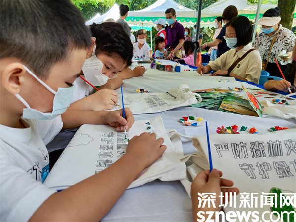 現(xiàn)場互動展區(qū)設有森林百米畫卷、環(huán)保袋 DIY,通過寓教于樂的方式,培養(yǎng)市民“人與自然”和諧發(fā)展的深層理念。小朋友們可以充分發(fā)揮天馬行空的想象力,在畫布和環(huán)保袋上涂鴉手繪,制作自己的“專屬定制”,完成互動還可以獲得精美的紀念品一份。