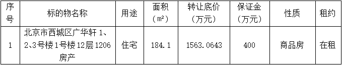 深圳報業(yè)集團委托北京產(chǎn)權(quán)交易所對北京市西城區(qū)廣華軒1、2、3號樓1號樓12層1206房產(chǎn)進行公開掛牌交易,北京產(chǎn)權(quán)交易所現(xiàn)已公開披露以下轉(zhuǎn)讓信息,廣泛征集受讓方。請有意者登錄北京產(chǎn)權(quán)交易所官方網(wǎng)站報名辦理意向受讓申請。