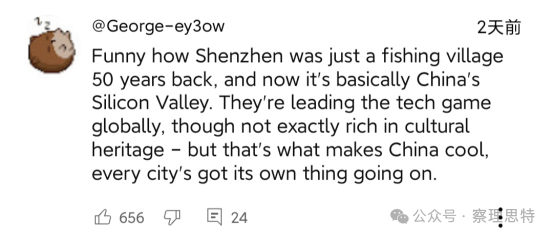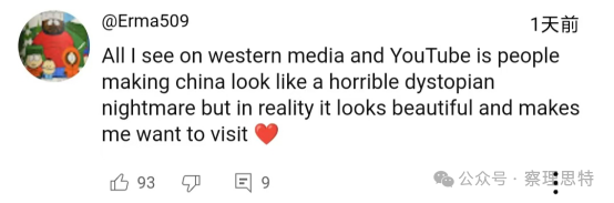 在YouTube上,“單槍匹馬摧毀了所有的反華努力,這太神奇了”“中國被低估了,簡直難以置信”“這次旅行是中國有史以來最好的宣傳”“在我看來深圳是中國最好的城市。有邁阿密的天氣、空氣和景觀,有紐約的摩天大樓,有上海的國際氛圍,有重慶的科技和賽博朋克美學(xué),還帶點廣東味”這樣的感嘆不勝枚舉。