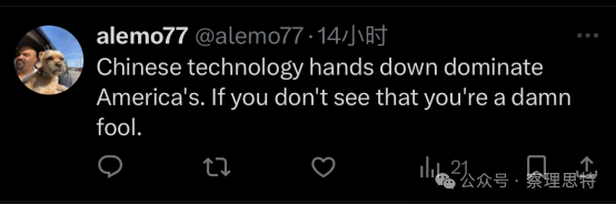 (中國的技術(shù)主導(dǎo)著美國的技術(shù)。如果你看不到這一點,你就落后了。)
