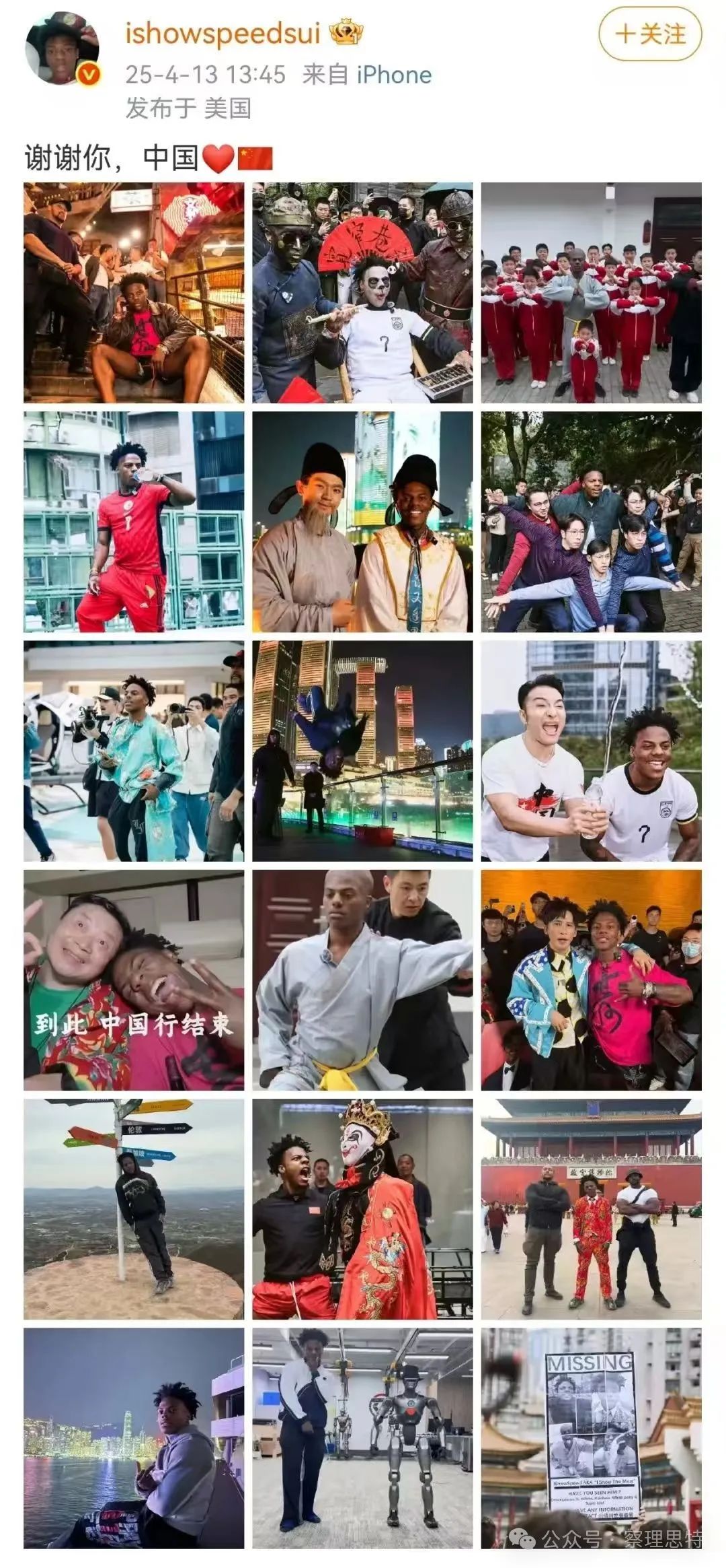 甲亢哥離開了中國,但顯然,他的心永遠留在了這里。