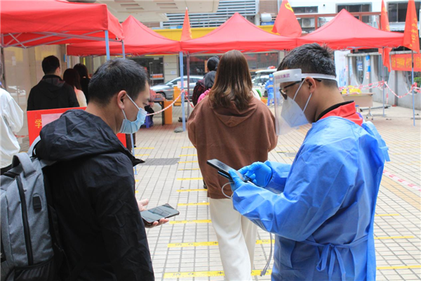 譚永飛是老圍社區(qū)的組織員,有著各種身份:核酸檢測點的錄入員、疫情防控中心的流調員,可謂“文武”雙全。