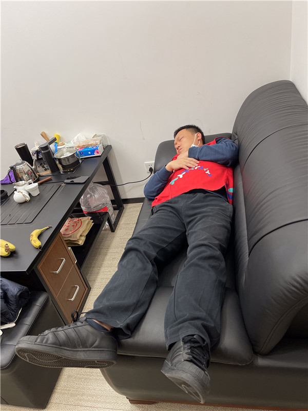 1月11日,在羅湖區(qū)清水河街道封控區(qū)外的工作人員整備區(qū),一位來自羅湖區(qū)民政局的下沉干部正吃著午飯,在太陽底下,汽車尾蓋成了他的臨時餐桌,而他的伙伴們,則在旁邊的大樹下席地而坐,一邊調(diào)侃著這特殊的“餐廳”,一邊商量著趕緊吃完開始工作。