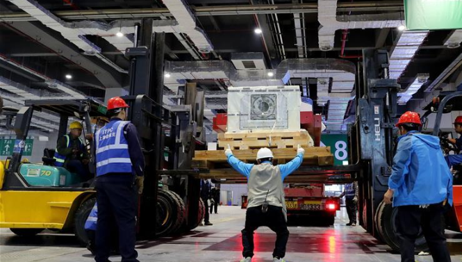 當日,來自德國的首屆進口博覽會最大展品——“金牛座”龍門銑床完成初步組裝,將運往國家會展中心(上海)3號館進行最后的安裝施工。