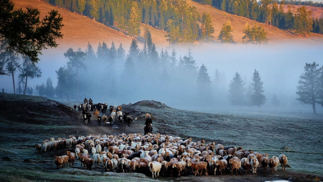 2018年9月11日,新疆阿勒泰美麗的托勒海特夏牧場天氣逐漸變冷,哈薩克族牧民整理好行裹,抱著孩子,趕著牛羊,浩浩蕩蕩向秋牧場遷徙。族牧民整理好行裹,抱著孩子,趕著牛羊,浩浩蕩蕩向秋牧場遷徙。
