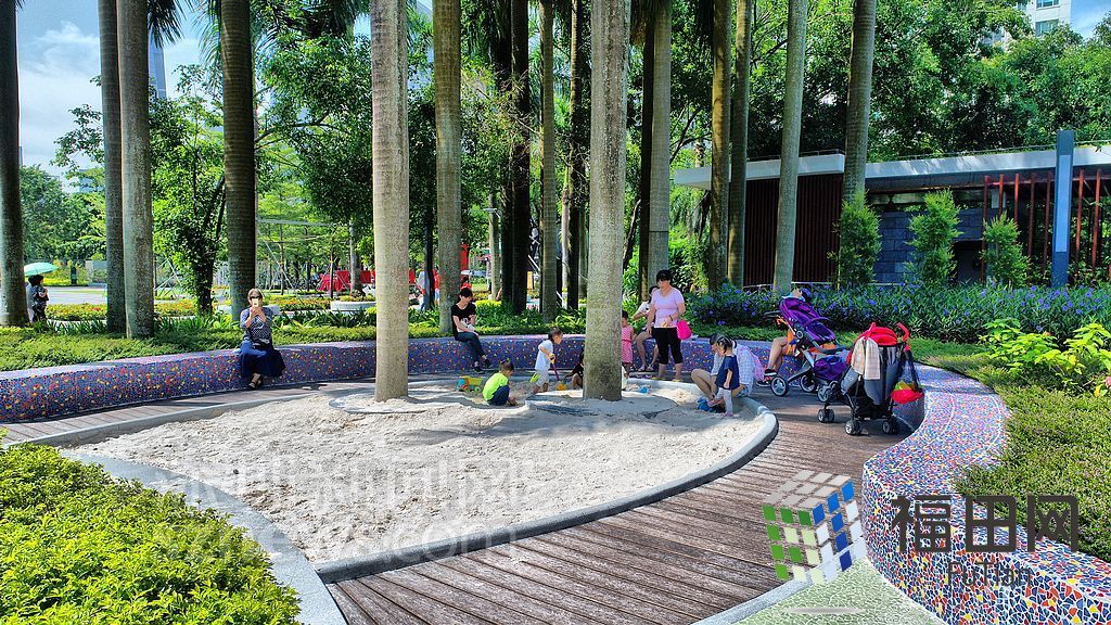 ?香蜜公園內(nèi)許多家長(zhǎng)帶著孩子玩耍。