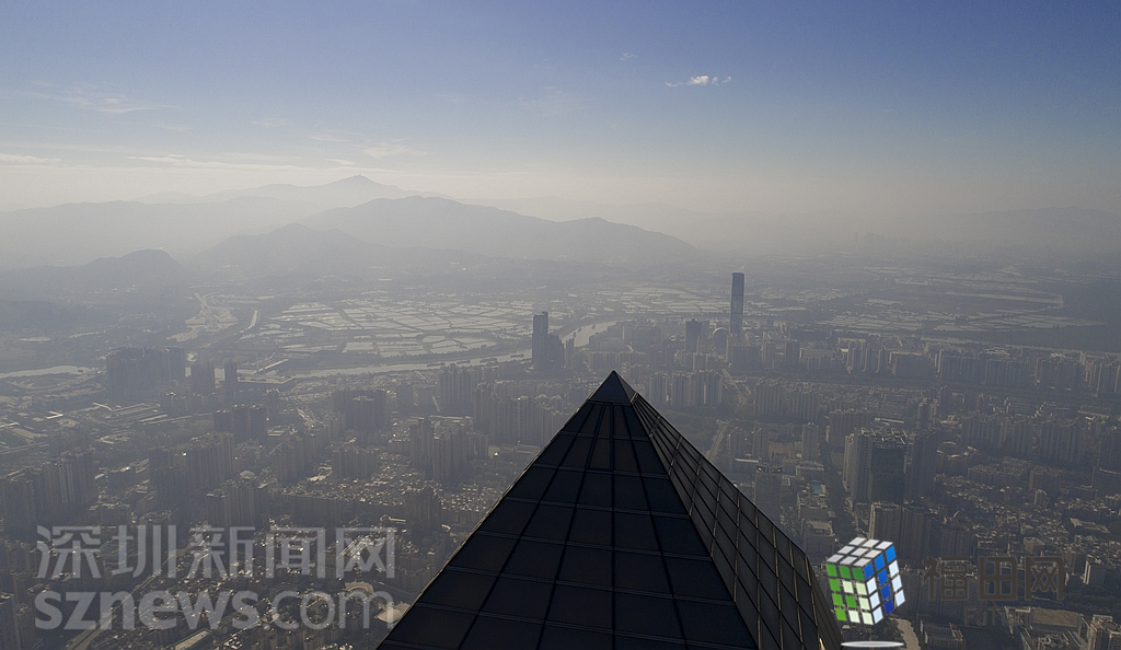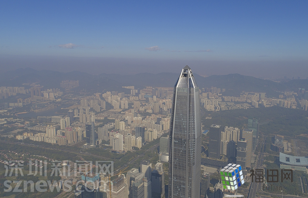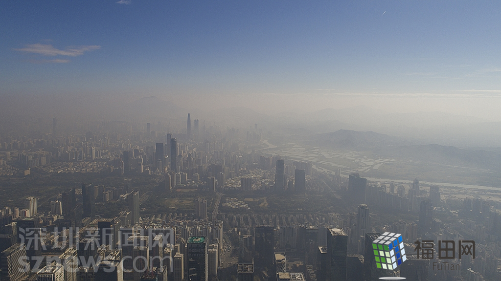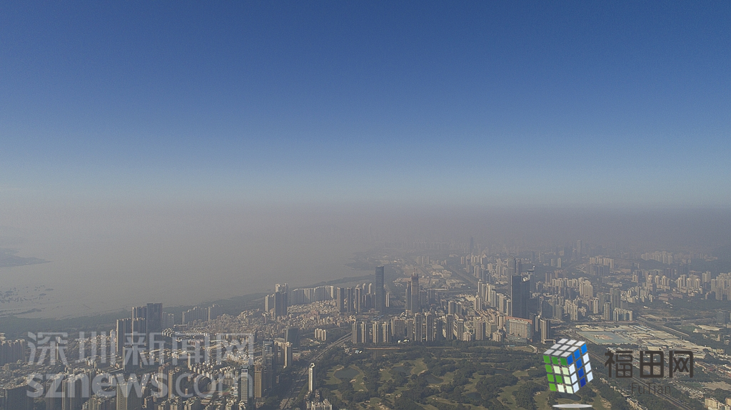 1月18日上午,記者操控無人機俯瞰深圳中心區(qū)發(fā)現,灰霾將天空“割裂”成一道涇渭分明的界線,把城市籠罩得如同一個充滿霧靄的森林。從平安金融大廈的上空遠眺,西南面的深圳灣在灰霾的籠罩下變成了一片“沙漠”,東面的京基一百幾乎被灰霾“吞沒”,北邊平時肉眼可看的梅林山也因為能見度較低變得若隱若現,南面的米埔濕地也被云遮霧繞。