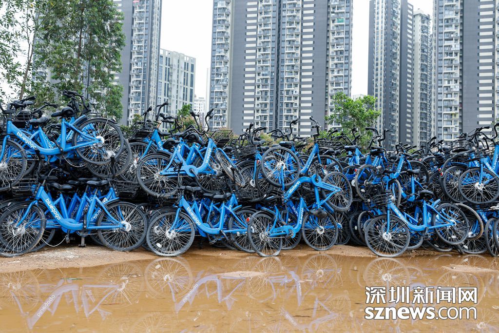 圖為深圳市場投放的小藍(lán)單車目前都集中存放在龍崗區(qū)某處