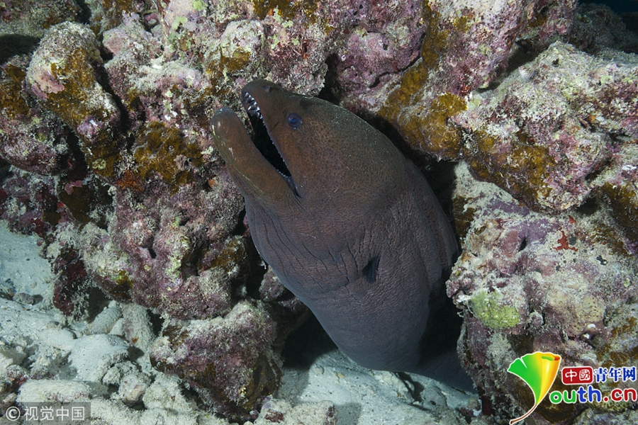 2018年5月7日訊(具體拍攝時(shí)間不詳),印度洋馬爾代夫水域,當(dāng)?shù)馗魃乃铩?/p>