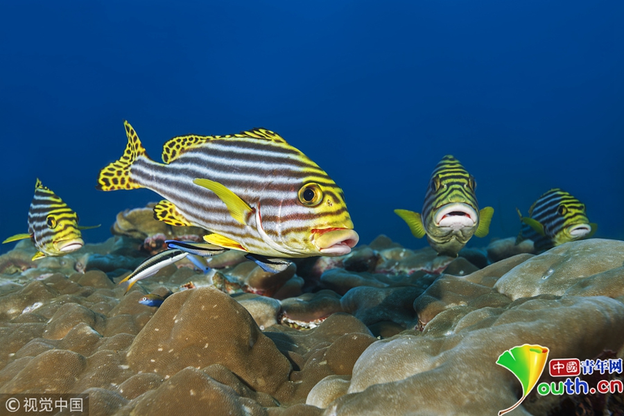 印度洋馬爾代夫水域,條紋叉鼻鲀。 圖片/視覺中國(guó)