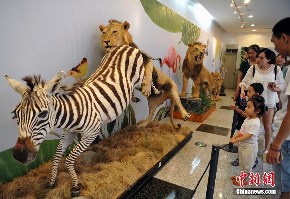 5月27日,各類飛禽走獸活靈活現(xiàn)地出現(xiàn)在民眾的眼前。正在福建博物院展出的第四屆中國(guó)動(dòng)物標(biāo)本大賽的257件惟妙惟肖的標(biāo)本作品集中對(duì)外開放,讓民眾如進(jìn)入“動(dòng)物世界”。本次大賽匯集了全國(guó)標(biāo)本制作企業(yè)、博物館、大專院校、研究所等60多家單位參加,標(biāo)本涵蓋哺乳類、鳥類、爬行類、兩棲類、魚類等動(dòng)物類群的皮張和骨骼標(biāo)本。主辦方希望通過標(biāo)本大賽,向公眾展現(xiàn)動(dòng)物世界的美麗,宣傳生物多樣性和生態(tài)文明,借鑒吸收國(guó)際標(biāo)本制作先進(jìn)經(jīng)驗(yàn),提高中國(guó)野生動(dòng)植物標(biāo)本制作的整體水平。圖為大賽參賽作品展吸引了許多民眾前來(lái)觀賞。中新社記者 張斌 攝