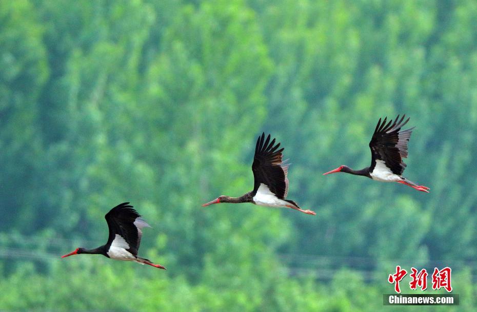 7月1日,河北石家莊平山崗南水庫下游滹沱河段發(fā)現(xiàn)成群黑鸛,最多時達12只,黑鸛是大型涉禽,屬國家一級保護動物,也是世界瀕危珍禽,已被《瀕危野生動植物國際貿(mào)易公約》列為瀕危物種。中新社發(fā)于英杰 攝