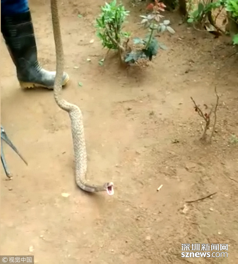 在印度Koppa,一條2.4米長的眼鏡蛇在逃跑時(shí)吐出四個(gè)雞蛋。這條蛇突襲雞舍殺死一只雞,吃了4個(gè)雞蛋,但逃跑時(shí)身體沉重、行動緩慢,就把雞蛋吐了出來。