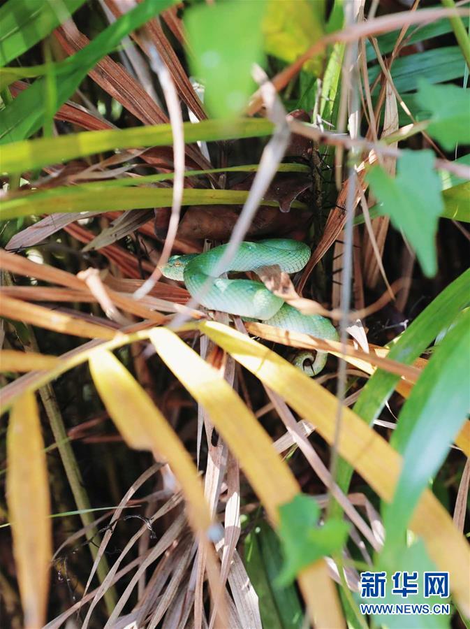 這是7月19日在馬來西亞沙撈越州峇哥國家公園拍攝的蝮蛇。設(shè)立于1957年的峇哥國家公園坐落于馬來西亞沙撈越州,擁有豐富的野生動(dòng)植物物種。新華社記者 朱煒 攝