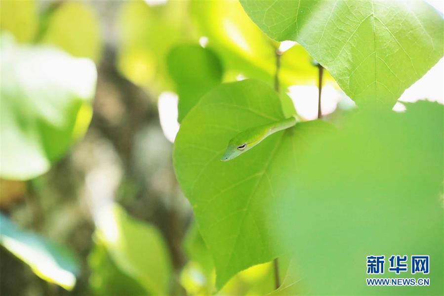 這是7月19日在馬來西亞沙撈越州峇哥國家公園拍攝的綠瘦蛇。設(shè)立于1957年的峇哥國家公園坐落于馬來西亞沙撈越州,擁有豐富的野生動(dòng)植物物種。新華社記者 朱煒 攝