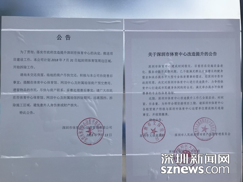 在進(jìn)入深圳體育場的路上,圍擋張貼了改建公告