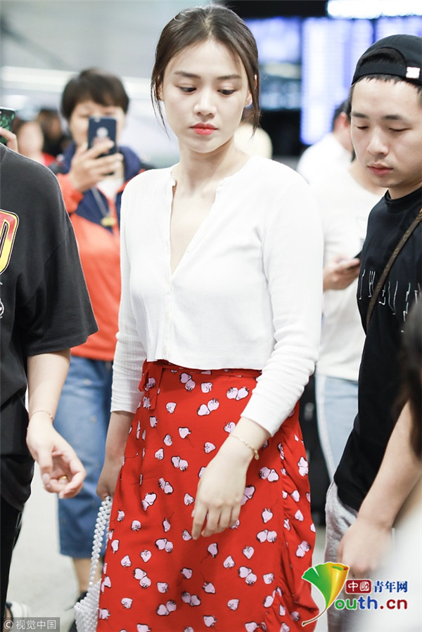 2018年7月31日,“水月”馬思純從北京飛往上海現(xiàn)身機場,她身穿草莓圖案大紅裙,手提櫻桃小竹籃,造型清新甜美,搭配深V白襯衫,美胸若隱若現(xiàn),平添小性感。