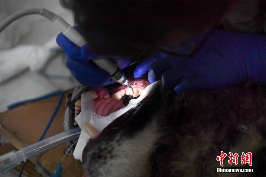 8月9日,獸醫(yī)使用洗牙機(jī)為老虎洗牙。當(dāng)日,位于昆明的云南野生動物園獸醫(yī)通過呼吸麻醉的方式,為園中一只一歲的老虎清潔牙。中新社記者 劉冉陽 攝