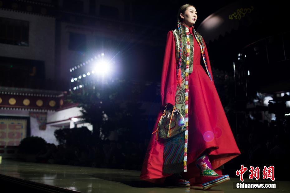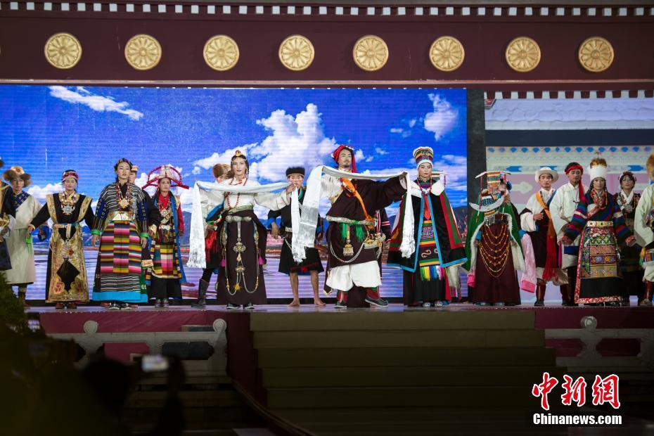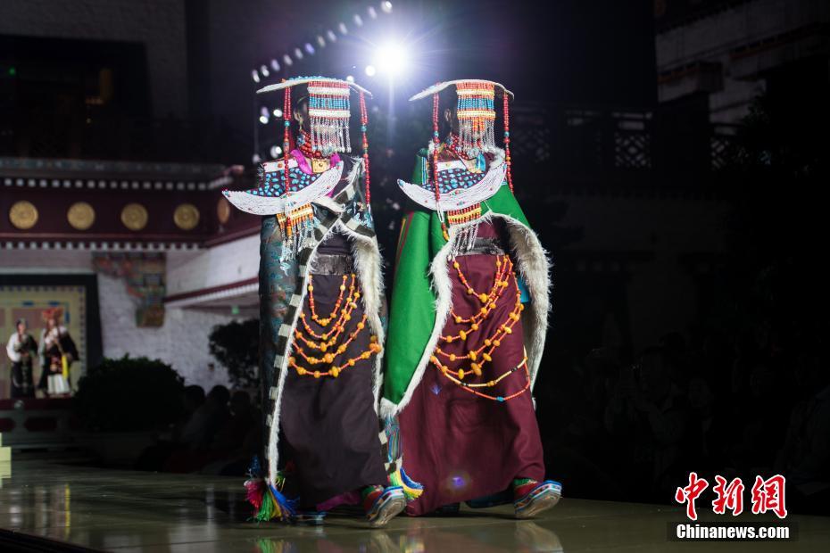 8月12日晚,由西藏職業(yè)技術(shù)學(xué)院與北京服裝學(xué)院共同打造的“凈美雪頓·美好生活”西藏民族服裝與服飾展演活動(dòng)在拉薩舉行?,F(xiàn)場(chǎng)通過傳統(tǒng)篇、現(xiàn)代篇與未來篇三個(gè)篇章,展演了藏族傳統(tǒng)服裝26套,設(shè)計(jì)創(chuàng)新服裝58套,共計(jì)84套服裝。圖為模特展示藏族傳統(tǒng)服飾。中新社記者何蓬磊 攝