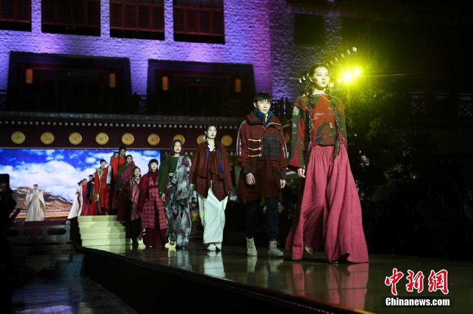 8月12日晚,由西藏職業(yè)技術(shù)學(xué)院與北京服裝學(xué)院共同打造的“凈美雪頓·美好生活”西藏民族服裝與服飾展演活動(dòng)在拉薩舉行。現(xiàn)場(chǎng)通過傳統(tǒng)篇、現(xiàn)代篇與未來篇三個(gè)篇章,展演了藏族傳統(tǒng)服裝26套,設(shè)計(jì)創(chuàng)新服裝58套,共計(jì)84套服裝。圖為模特展示現(xiàn)代設(shè)計(jì)的創(chuàng)新藏族服飾。中新社記者何蓬磊 攝