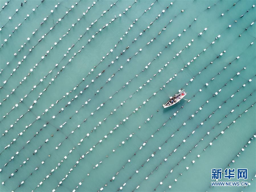 8月18日,南麂島馬祖岙海灣內(nèi),養(yǎng)殖戶乘船在貽貝養(yǎng)殖區(qū)內(nèi)作業(yè)(無人機拍攝)。進入8月,浙江省溫州市平陽縣南麂鎮(zhèn)海域上大片的大黃魚、貽貝等特色海產(chǎn)品養(yǎng)殖區(qū)域迎來豐收季節(jié),養(yǎng)殖戶們駕駛漁船在養(yǎng)殖區(qū)海域進行打撈收獲,在碧海藍天下構(gòu)成了一幅“海上牧場”的美麗豐收景象。近年來,南麂鎮(zhèn)政府引導漁民養(yǎng)殖戶充分發(fā)揮“靠海吃海”的資源優(yōu)勢,大力發(fā)展海洋養(yǎng)殖經(jīng)濟和海島旅游經(jīng)濟,實現(xiàn)了南麂由“生態(tài)美”向“產(chǎn)業(yè)美”,“產(chǎn)業(yè)美”向“經(jīng)濟美”的轉(zhuǎn)變。同時該鎮(zhèn)堅持以大黃魚、貽貝等為特色產(chǎn)業(yè)支撐,精準發(fā)展高效海洋養(yǎng)殖業(yè),重點培養(yǎng)一批新型職業(yè)漁民,依靠專業(yè)技術(shù)支持,實現(xiàn)深海仿生養(yǎng)殖,讓好生態(tài)造就好品質(zhì),重點打造南麂養(yǎng)殖品牌,組建營銷網(wǎng)絡(luò),拓展特色海產(chǎn)品市場。新華社記者 徐昱攝