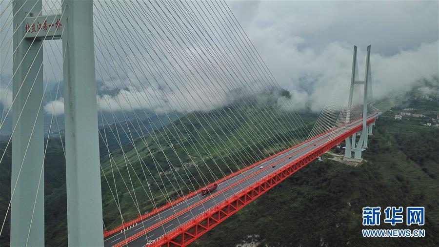 8月9日無人機(jī)航拍的北盤江大橋。 新華社記者歐東衢攝
