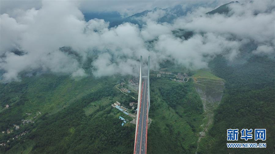 8月9日無人機(jī)航拍的北盤江大橋。 新華社記者歐東衢攝