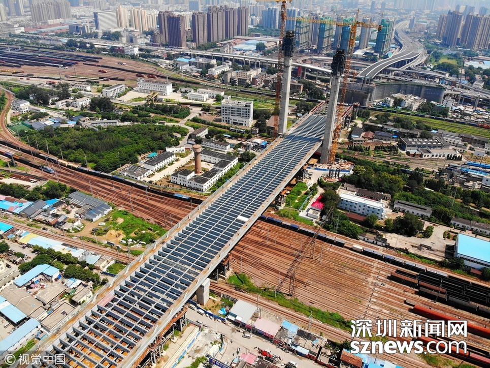 深圳新聞網(wǎng)訊 2018年8月19日,鄭州,跨亞洲最大火車站編組站的農(nóng)業(yè)路高架鄭北大橋工程開始最后一輪頂推,長(zhǎng)度為160米,約占總頂推長(zhǎng)度的1/3,頂推重量達(dá)到9000噸。