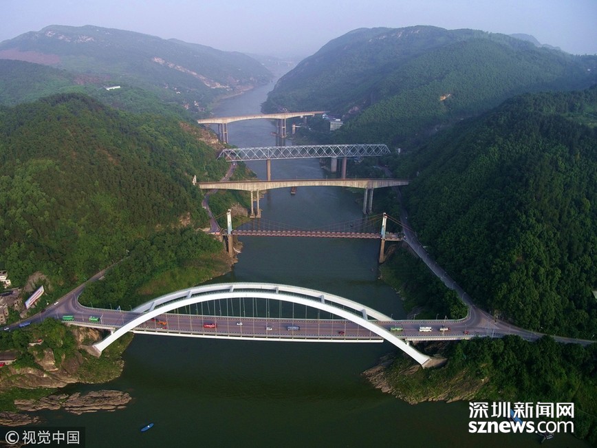 相關鏈接 五橋“疊翠”!重慶又一景點爆紅網(wǎng)絡! 2018年5月18日,重慶,在嘉陵江重慶觀音峽段,間隔不到1000米的江面上橫跨著五座大橋,形成了五橋“疊翠”的美麗景觀,生動展示了“橋都”重慶的變化。 畫面中由近及遠分別是新朝陽橋、老朝陽橋、遂渝鐵路橋、襄渝鐵路橋、蘭渝鐵路橋。