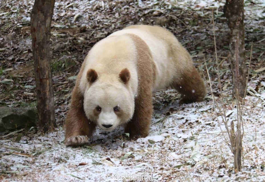 秦嶺大熊貓野化培訓(xùn)佛坪基地,7歲的棕色大熊貓七仔是目前全世界唯一能看到的棕色大熊貓活體。今年是它在基地過(guò)的第二個(gè)冬天,每逢下雪,七仔就興奮地滿(mǎn)園子跑,變身“雪花熊”。央視記者李志王志杰 圖片來(lái)源:央視新聞官方微博