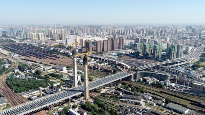 鄭州鄭北大橋鋼梁頂推成功
