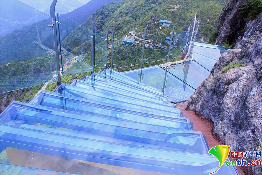 經(jīng)過一年的建設(shè),位于素有“嶺南第一險峰”與“南粵小華山”之稱的廣東清遠(yuǎn)連山金子山,有一條玻璃天梯建成。下個月10日,玻璃天梯將正式對游客開放。