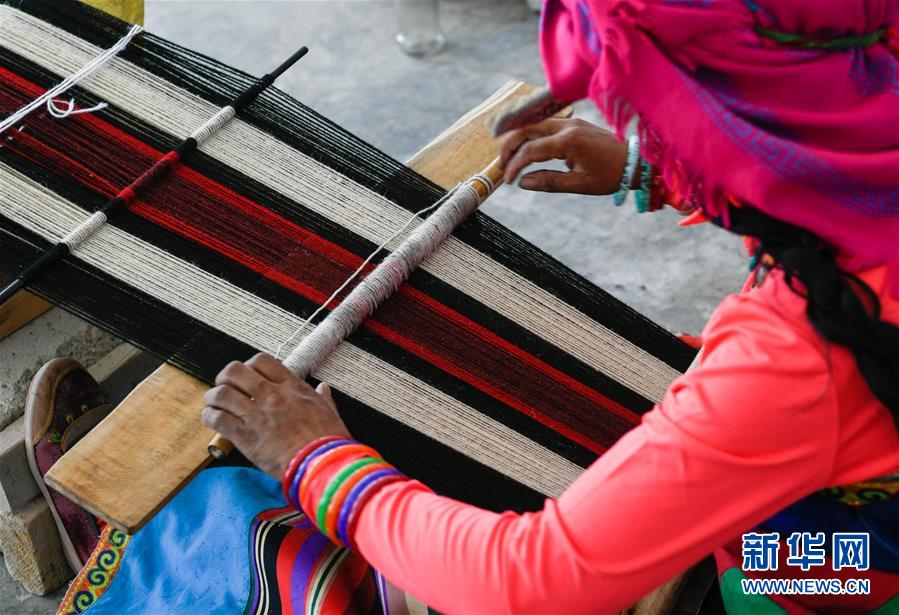 員工卓瑪在鹽湖鄉(xiāng)羌麥村民族手工編織廠工作(9月19日攝)。 2018年,西藏阿里地區(qū)革吉縣鹽湖鄉(xiāng)政府自籌資金成立羌麥村民族手工編織廠,編織廠將當(dāng)?shù)貍鹘y(tǒng)手工編織技藝與市場(chǎng)需求相結(jié)合,生產(chǎn)手提包、圍脖、腰帶、毛毯、藏式頭巾等產(chǎn)品,并參加旅游推介活動(dòng),拓寬編織品銷售渠道,助力當(dāng)?shù)鼐用衩撠殹?新華社記者 劉東君 攝