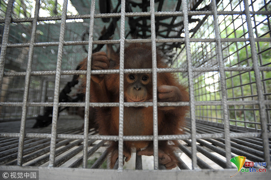 當?shù)貢r間2018年9月18日,印尼加里曼丹克塔邦,國際動物救援(IAR)猩猩安全與保護中心里。圖片作者:Newscom