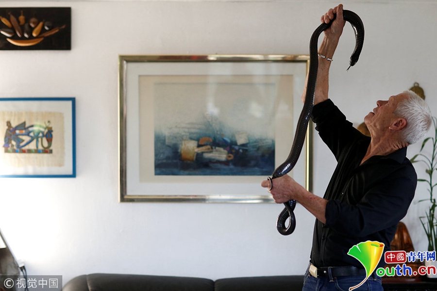 中國青年網(wǎng)北京9月21日電 當?shù)貢r間2018年9月19日,法國67歲的法國男子Philippe Gillet與400多只爬行動物生活在一起,有鱷魚、蜥蜴、眼鏡蛇等等。