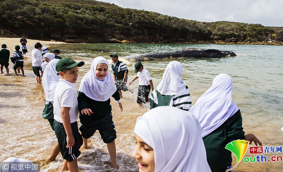 一頭鯨魚尸體被沖上悉尼南部的Wattamolla海灘. 圖片來(lái)源:視覺(jué)中國(guó)