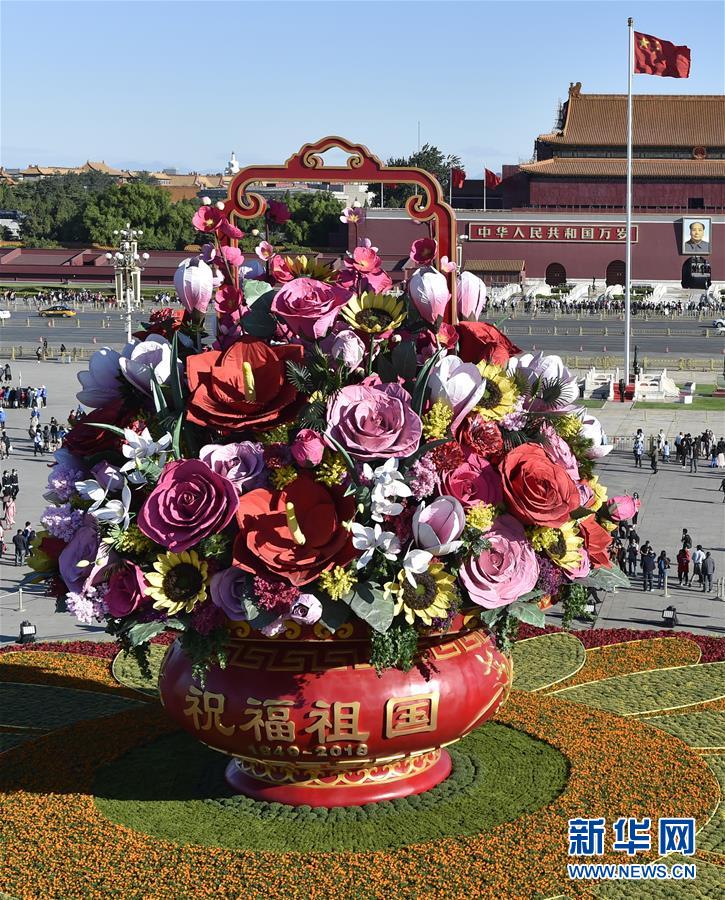 “祝福祖國”花籃連續(xù)八年綻放天安門廣場 獻(xiàn)禮國慶