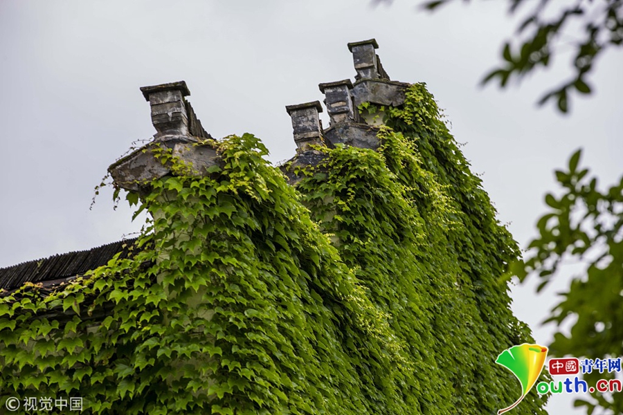 2018年5月6日,安徽省黃山市黟縣秀里村郁郁蔥蔥、枝葉茂盛的爬山虎爬滿(mǎn)了村里一幢幢徽派古民居,儼然一座座“綠色城堡”,綠意盎然爬山虎與粉墻黛瓦相映成趣,仿佛“綠野仙蹤”。