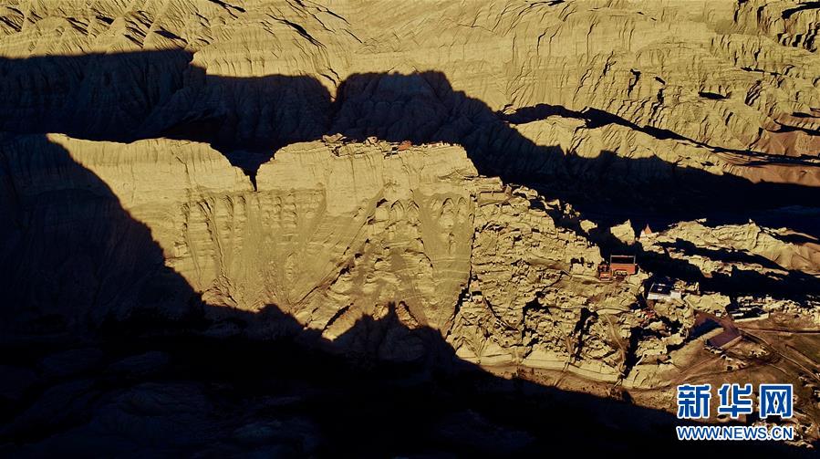 從空中鳥瞰西藏阿里地區(qū)東嘎遺址(9月11日無人機(jī)拍攝)。 西藏阿里地區(qū)素有“世界屋脊的屋脊”之稱,平均海拔4000米以上。這里河流縱橫、湖泊密布、土林林立。從空中鳥瞰阿里大地,呈現(xiàn)出一幅幅獨特的美景。 新華社記者 普布扎西 攝