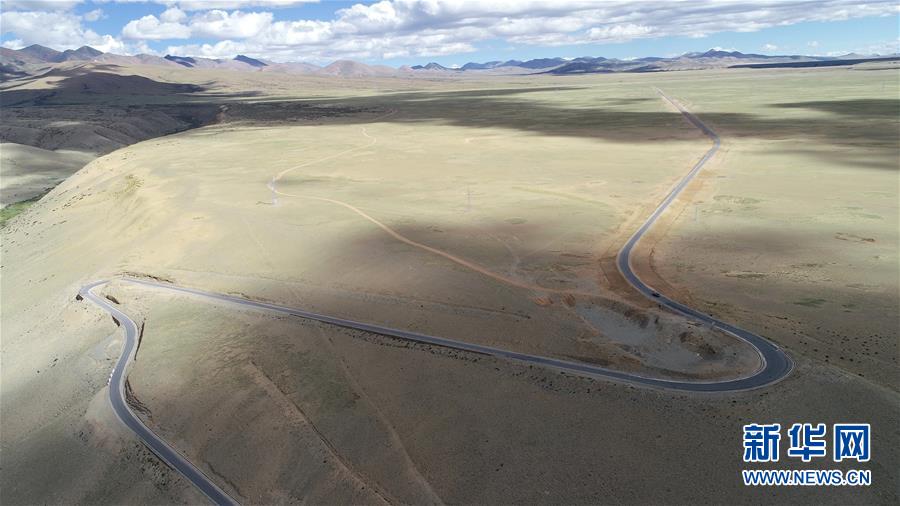 從空中鳥瞰西藏阿里地區(qū)札達(dá)縣公路(9月10日無人機(jī)拍攝)。 西藏阿里地區(qū)素有“世界屋脊的屋脊”之稱,平均海拔4000米以上。這里河流縱橫、湖泊密布、土林林立。從空中鳥瞰阿里大地,呈現(xiàn)出一幅幅獨特的美景。 新華社記者 普布扎西 攝